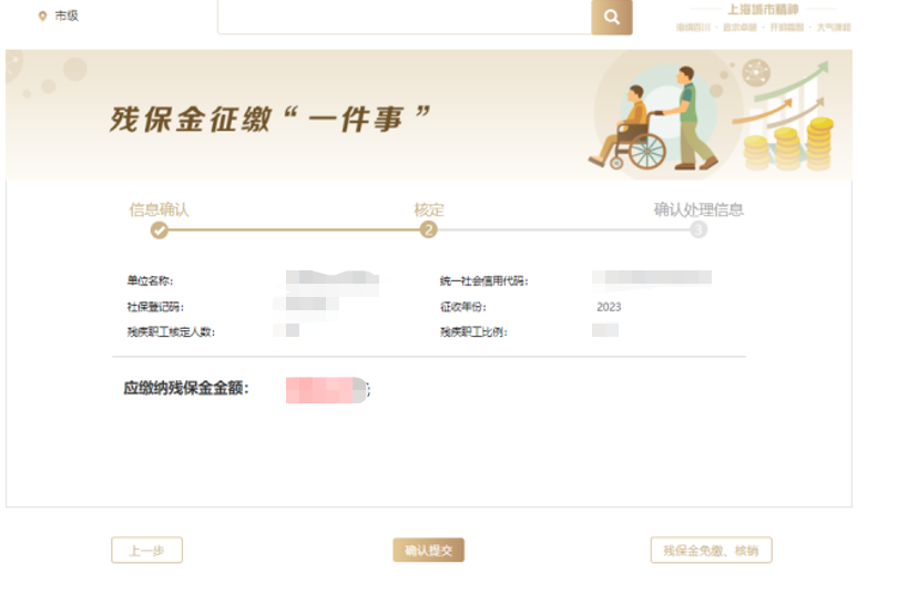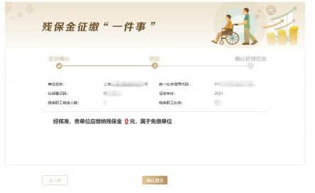 1、無需繳納殘保金企業(yè),點(diǎn)擊“確認(rèn)提交”后完成本次操作。