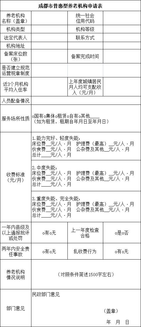 附件:1. 成都市普惠型養(yǎng)老機(jī)構(gòu)申請表