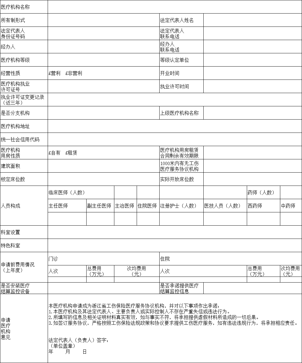 浙江省工傷保險(xiǎn)醫(yī)療服務(wù)協(xié)議機(jī)構(gòu)申請(qǐng)書