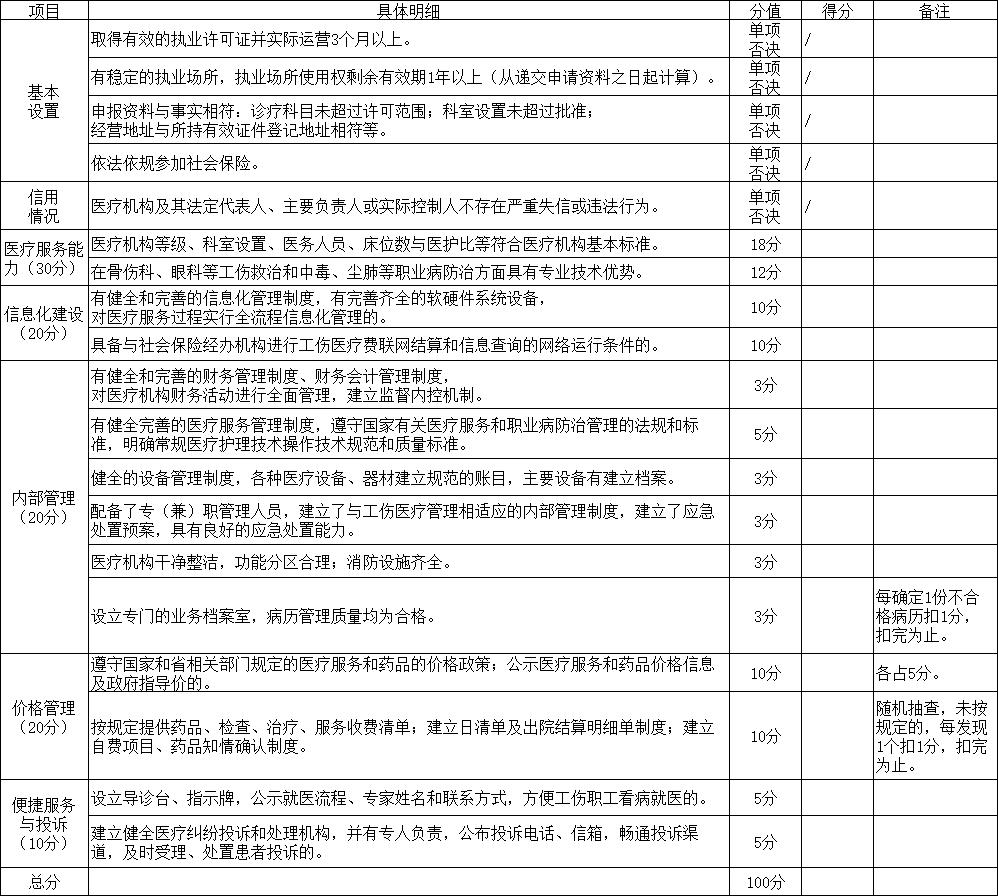 浙江省工傷醫(yī)療機(jī)構(gòu)資質(zhì)評(píng)估評(píng)分表